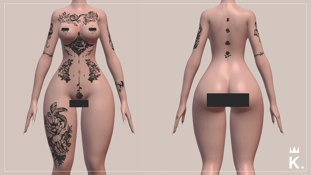 "Roses & Snakes" Tattoo Template for Panda's Female Base.
